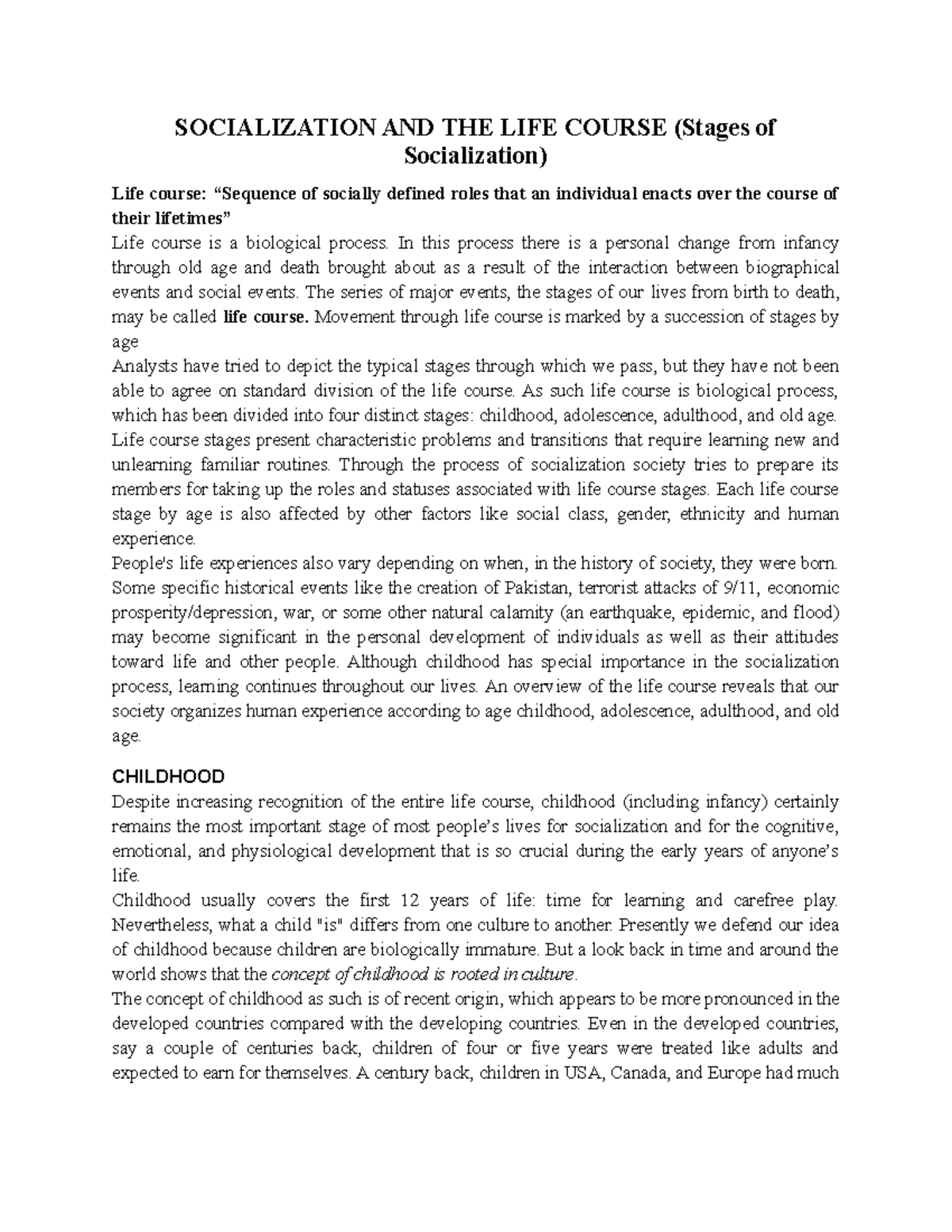 Socialization And The Life Course Socialization And The Life Course Stages Of Socialization Life Studocu
